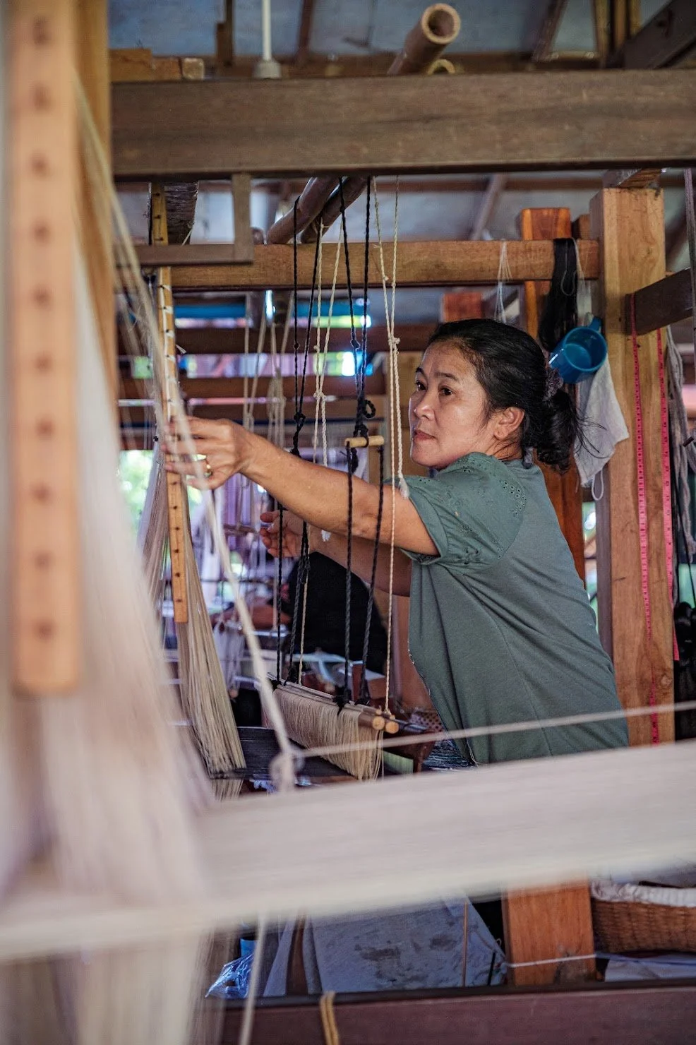 Ock Pop Tok means “East Meets West” in Lao. A local woman and a woman from the west (UK) founded a so-named weaving center to lift families out of poverty.