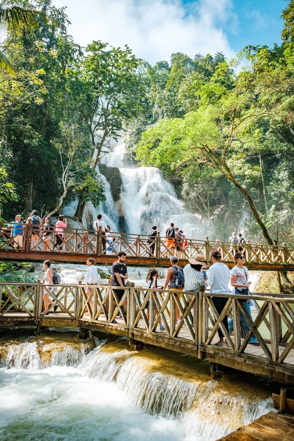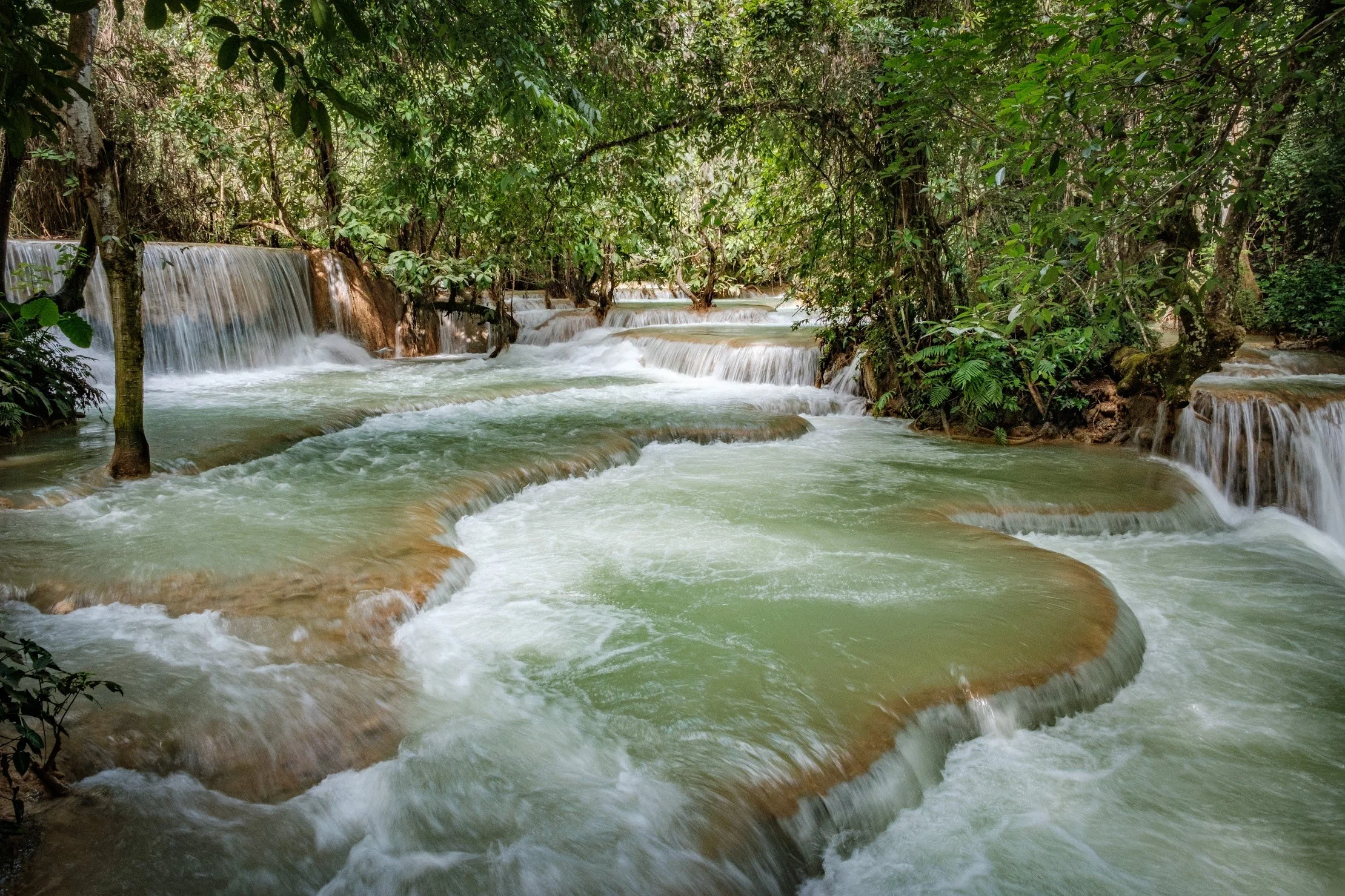 As someone who has seen waterfalls all around the world, I was skeptical that the crowds and hour-long bumpy ride to Kuang Si Falls would be worth it. Urged by locals and westerners alike, we grabbed our rented motorbike and went with dubious curiosity. Luang Prabang’s most popular tourist destination didn’t disappoint. Each level up the limestone terraces impressed more and more. The shear power of the flow at the top slicked my skin with spray. Even folks jostling for photo spots didn’t dampen the impact of this true force of nature.